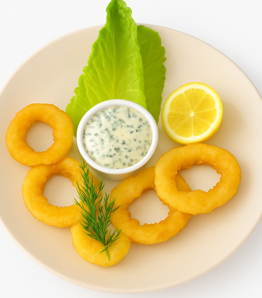 Salata , Çips ve Tartar Sos Eşliğinde Servis Edilmektedir